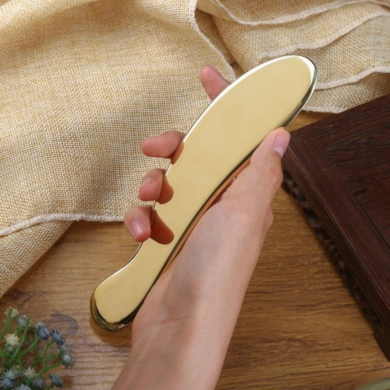102. 真鍮製グアシャボード – 顔・首・全身用経絡ケアマッサージャー