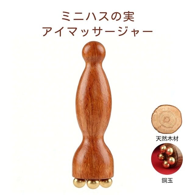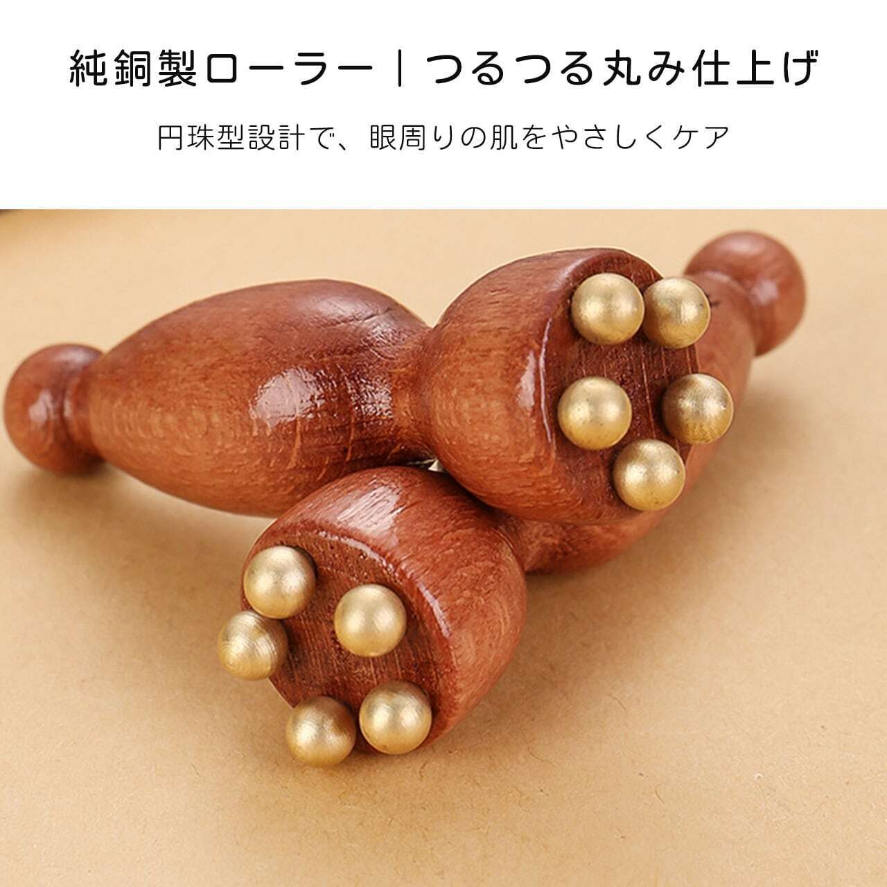 103. 純銅フェイスマッサージローラー 目元ケア&むくみ対策 木製ハンドル 丸型ヘッド リラックス美容 ヘッドスパローラー 1個セット
