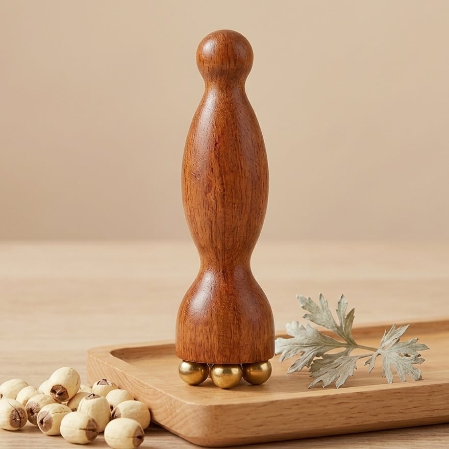 手にフィットする木製ハンドルで安定した操作感。自宅で本格的なセルフケアを手軽に楽しめます。